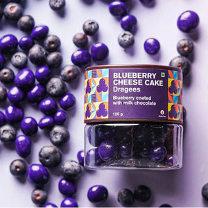 Whole dried blueberries coated in a blend of smooth milk and white chocolate, enriched with cream cheese.